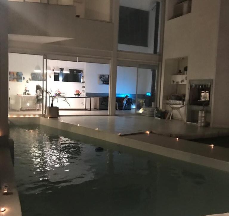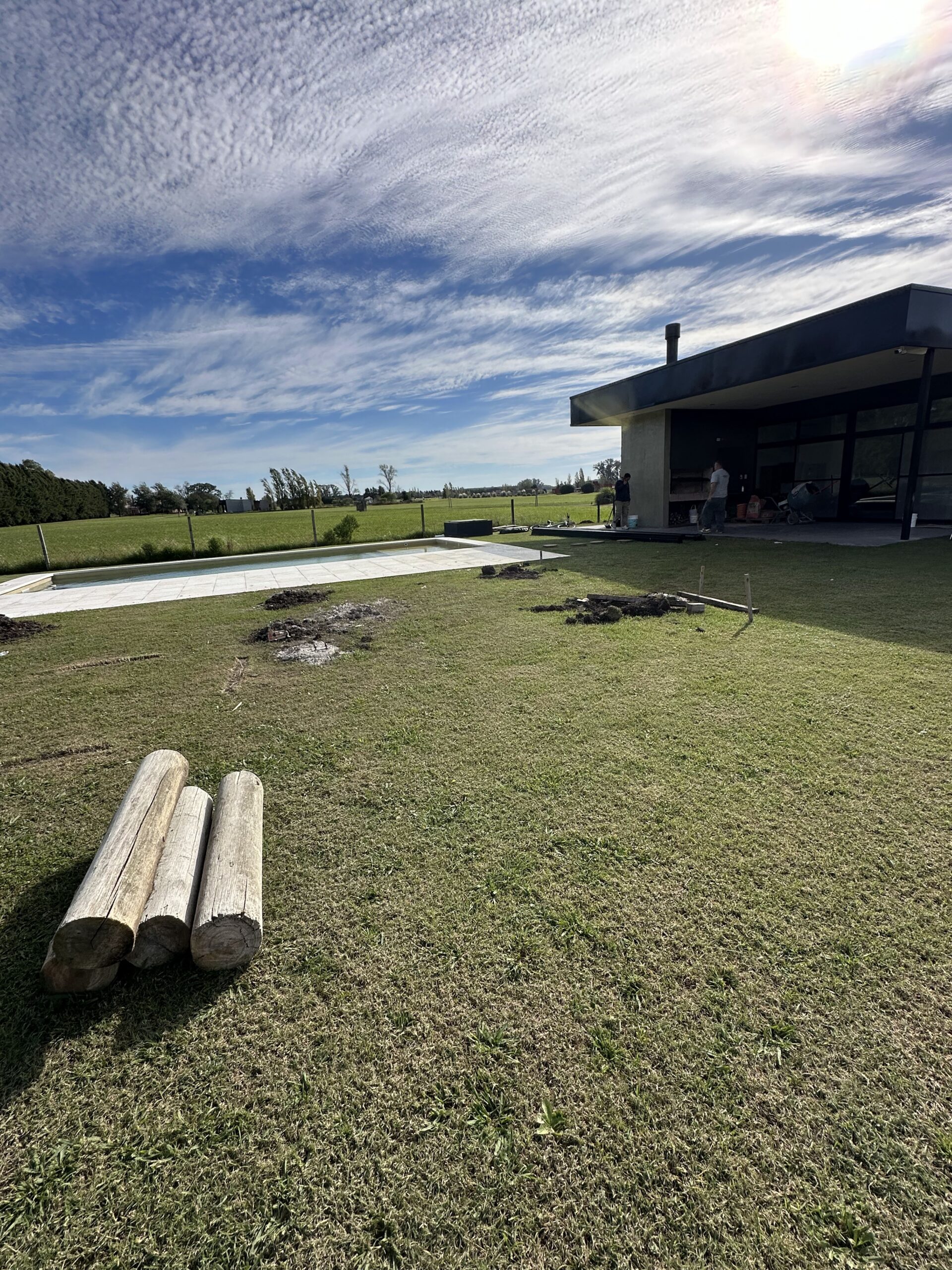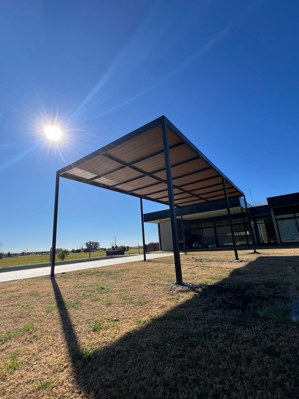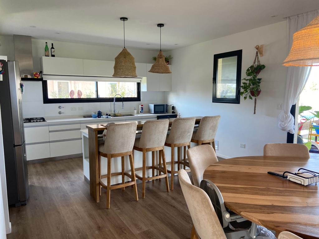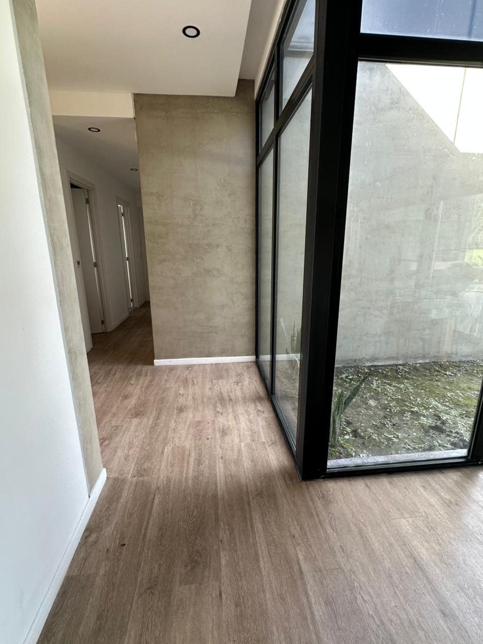 Casa en una planta de 200 m2 en barrio cerrado de Carlos Keen con 3 habitaciones, cocina comedor integrada, 2 baños, 2 toilettes, piscina y pérgola.