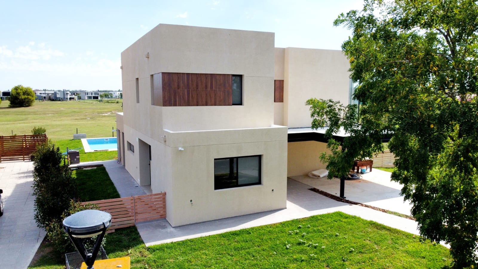 Casa en 2 plantas de 270 m2 en barrio cerrado de Escobar con 4 habitaciones, cocina comedor integrado, 1 baño en suite, 2 baños principales y toilette, galería con parrilla, espacio de guardado, piscina, pérgola y cochera.