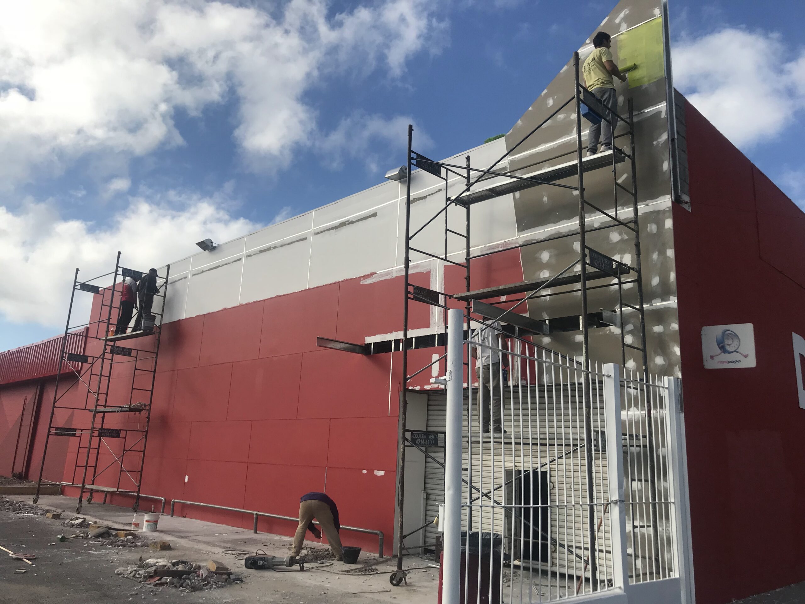 Construcción y reacondicionamiento de 150 tiendas en todo el país. Trabajo integral de remodelación de fachadas e interiores: solados, cielorrasos, revestimiento, plomería, albañilería, instalación eléctrica, herrería, pintura y otros gremios ligados a la construcción.